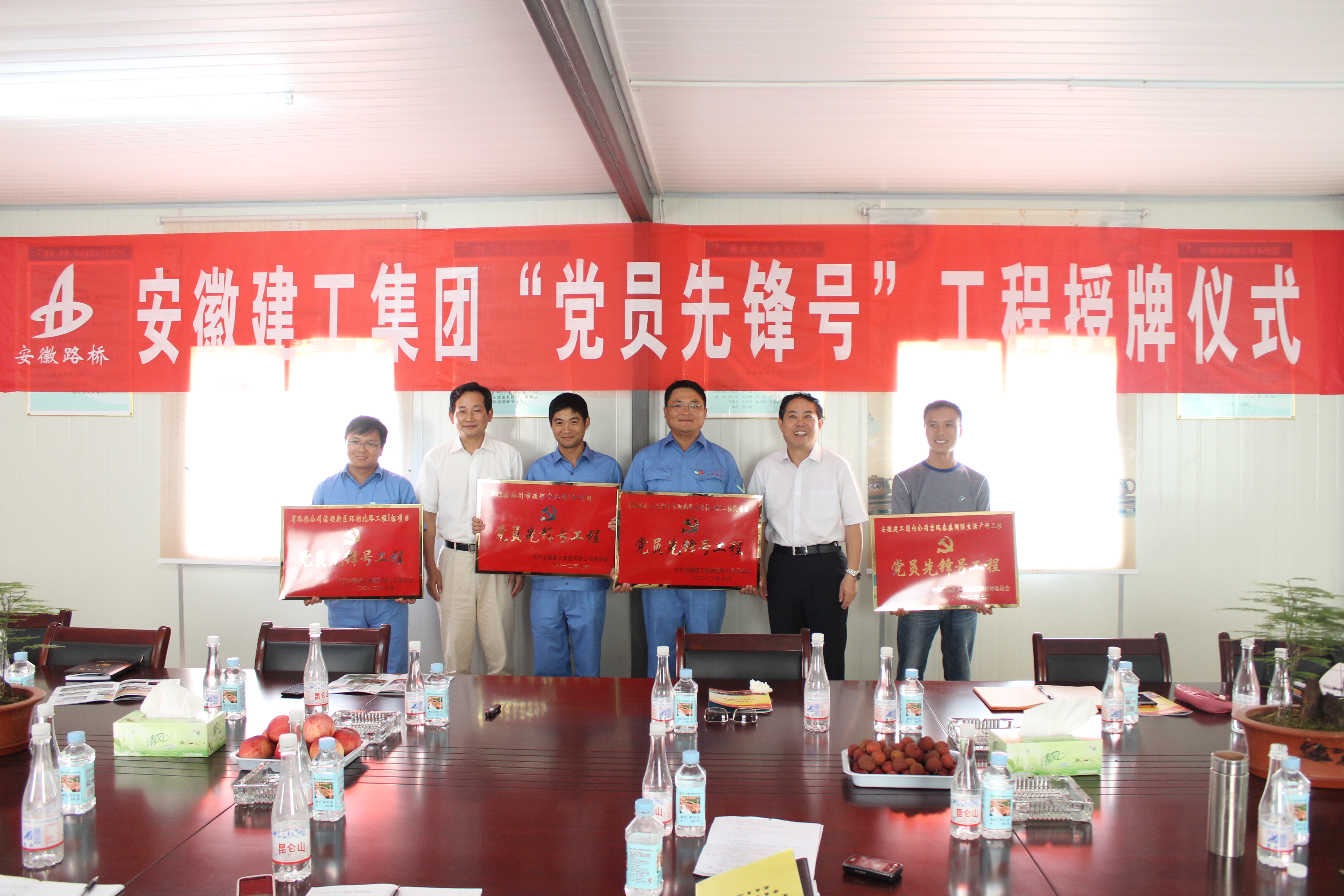 7月18日,集團(tuán)公司黨委副書記、副董事長李長斌來到省路橋公司承建的合肥市濱湖新區(qū)環(huán)湖北路工程I標(biāo)項(xiàng)目,分別授予該項(xiàng)目和省路橋公司承建的合肥市懷寧北路1標(biāo)項(xiàng)目、合肥市阜陽北路高架工程二標(biāo)段項(xiàng)目、國內(nèi)公司承建的吉瑞泰盛國際生活廣場工程四個(gè)項(xiàng)目集團(tuán)公司“黨員先鋒號(hào)工程”獎(jiǎng)牌。集團(tuán)公司紀(jì)委書記、工會(huì)主席牛曙東,省路橋公司黨委書記陳光磊、總工程師彭申凱、國內(nèi)公司黨總支副書記江萍、集團(tuán)黨委工作部等同志陪同。