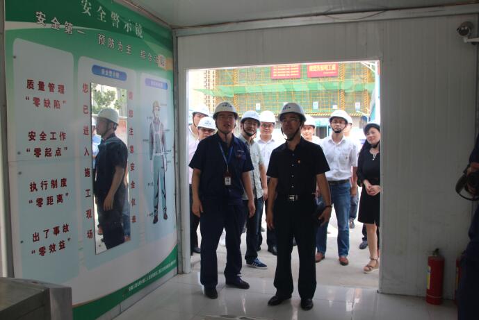 費書記一行首先深入施工現(xiàn)場參觀了解工程建設(shè)情況,并不時詢問青年職工的生活情況及存在的困惑和問題。費書記為整個施工現(xiàn)場布局整齊、場地整潔、環(huán)境綠化美觀及工程創(chuàng)新技術(shù)的應(yīng)用表示高度贊賞。