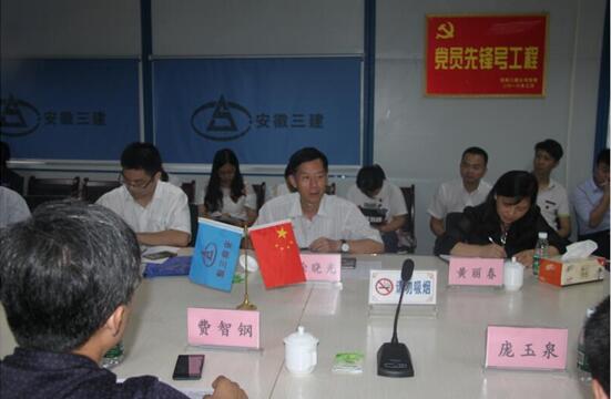 為深入貫徹中央群團工作會議精神,進一步落實團干聯(lián)系團員青年的制度,有序有力推動共青團工作改革創(chuàng)新, 6月23日,省國資委群眾工作處副處長、團工委副書記費智鋼,應(yīng)邀到合肥市二院項目部參加安徽三建團委專題開放日活動,并為公司團委獲得2015年度安徽省“五四紅旗團委”授牌。省國資委團工委龐玉泉、建工集團工會主席、公司黨委書記徐曉光、建工集團團委書記王詩旵及公司紀(jì)委書記黃麗春、團委書記張鑫等陪同。公司在肥團支部負責(zé)人、項目一線青年代表共30余人參加了開放活動。