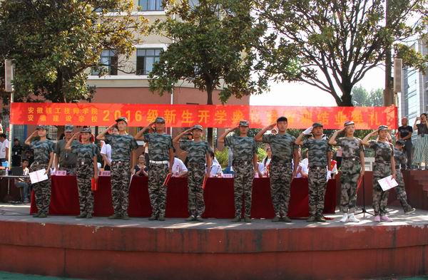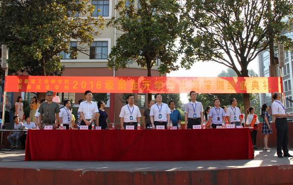 9月1日上午8點(diǎn),安徽建工技師學(xué)院在田徑場召開2016級新生開學(xué)典禮暨軍訓(xùn)結(jié)業(yè)典禮。院長兼黨委書記張衛(wèi)東、副院長任建設(shè)、呂良玉、院長助理張齊欣、軍訓(xùn)隊(duì)隊(duì)長李超和相關(guān)部門領(lǐng)導(dǎo)同志出席了典禮。典禮由副院長呂良玉主持。