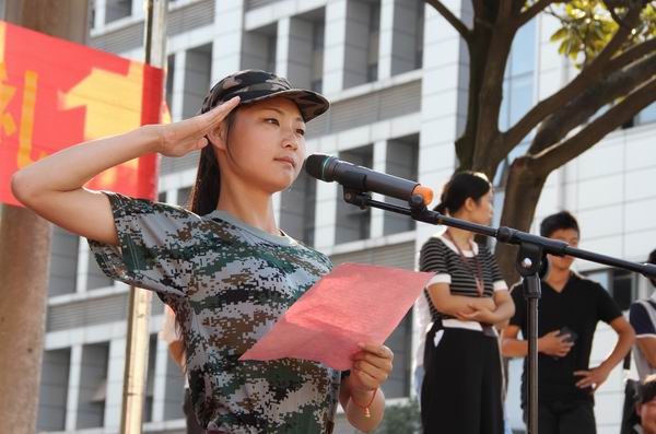 典禮上,軍訓(xùn)學(xué)員們進(jìn)行了分列式、擒敵拳、韻律體操、隊(duì)列會操、軍體拳和手語表演,向全院師生展現(xiàn)了軍訓(xùn)期間的訓(xùn)練成果。任建設(shè)副院長宣讀了《關(guān)于2016級學(xué)生軍訓(xùn)的表彰決定》,對在10天軍訓(xùn)中表現(xiàn)突出的連隊(duì)和學(xué)員進(jìn)行了表彰。新生代表2016級幼兒教育專業(yè)的朱群同學(xué)代表全體新生進(jìn)行了發(fā)言。