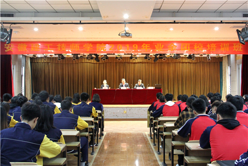 為進(jìn)一步貫徹落實(shí)共青團(tuán)改革工作,從嚴(yán)治團(tuán),選拔并發(fā)展一批素質(zhì)硬、能力強(qiáng)、品行優(yōu)的共青團(tuán)員,2019年4月22日17點(diǎn)30分,安徽建工技師學(xué)院2019年業(yè)余團(tuán)校培訓(xùn)班開(kāi)班儀式在院禮堂舉行。學(xué)院黨委書(shū)記、院長(zhǎng)張衛(wèi)東、副院長(zhǎng)任建設(shè)、院團(tuán)委書(shū)記周曉瑛、團(tuán)委干事許欣璨、五系一部團(tuán)總支負(fù)責(zé)老師和入團(tuán)積極分子近700人參加儀式。