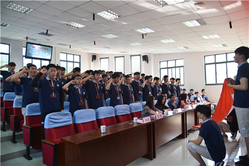 隨后,汽車與機(jī)電技術(shù)系書記助理蔡克老師宣讀了《關(guān)于同意成立“紅馬甲”青年志愿者服務(wù)隊(duì)的批復(fù)》。德育工作部副主任、團(tuán)委書記周曉瑛同志為“紅馬甲”青年志愿者服務(wù)隊(duì)授旗?!凹t馬甲”青年志愿者服務(wù)隊(duì)副隊(duì)長陳亞楠老師宣讀了《“紅馬甲”青年志愿者服務(wù)隊(duì)章程》。18機(jī)電一體化班的李成同學(xué)代表青年志愿者發(fā)言,并帶領(lǐng)全體青年志愿者面對隊(duì)旗進(jìn)行了宣誓。