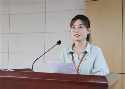 7、汽車與機(jī)電技術(shù)系書記助理蔡克老師宣讀《關(guān)于同意成立“紅馬甲”志愿者服務(wù)隊(duì)的批復(fù)》