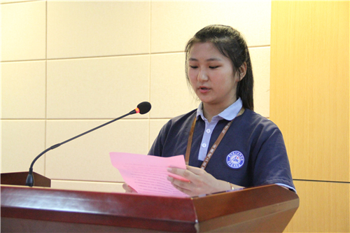 接著,來(lái)自建筑藝術(shù)系李欣蕊同學(xué)代表全體學(xué)生發(fā)言。她回顧了一學(xué)期來(lái)的學(xué)習(xí)生活體會(huì),號(hào)召全體同學(xué)認(rèn)真復(fù)習(xí),在期末考試中取得好成績(jī),文明離校,度過(guò)一個(gè)安全愉快有意義的暑假。