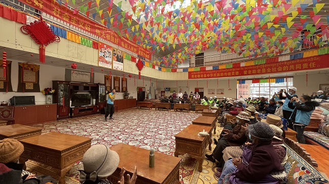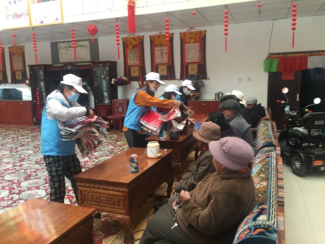 路橋集團(tuán)西藏新瑞公司青年志愿者一行來到拉薩市社會福利院,幫助社會福利院開展衛(wèi)生清理、花壇雜草清除等實踐活動,為孤寡老人送上保溫杯、圍巾、棉被、帽子等愛心物資,還為他們包水餃、演節(jié)目,陪老人們一起度過了一個溫馨的節(jié)日。