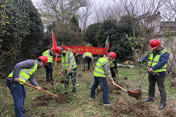 市政分公司團(tuán)支部組織團(tuán)員青年在淝河鎮(zhèn)席井村開(kāi)展植樹(shù)活動(dòng)。放眼席井村,春山可望,草木萌發(fā),大家或兩人一組、或三人一隊(duì),挖基坑、拌肥料、扶苗木等環(huán)節(jié)緊密銜接。一番辛勤的勞作后,20余株香樟樹(shù)苗在此扎根。