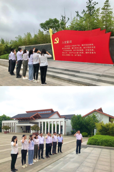 隨后,大家沿著紅色足跡來到了沈浩同志先進事跡陳列館,現(xiàn)場認真聆聽了沈浩同志的先進事跡,在他擔任村領(lǐng)導的六年中,他深入群眾、拉近距離、調(diào)研走訪、摸清村情,用心融入到小崗村。在為小崗村脫貧致富忙碌奔波中,三過家門而不入,吸引大學生進村創(chuàng)業(yè)、招商引資辦工業(yè)、開發(fā)旅游促三產(chǎn)等一系列措施,使得小崗村村民生活水平顯著提高,文化生活豐富多彩,精神面貌煥然一新。在學習沈浩同志先進事跡時,大家無不為沈浩扎根小崗、克己奉公、干事創(chuàng)業(yè)的崇高品質(zhì)所感動,更加明白了為什么他能成為小崗村鄉(xiāng)親們?nèi)伟聪录t手印留下的好干部、人民好公仆。在陳列館門前,黨員面對鮮紅的黨旗,重溫入黨誓詞,莊嚴宣誓。