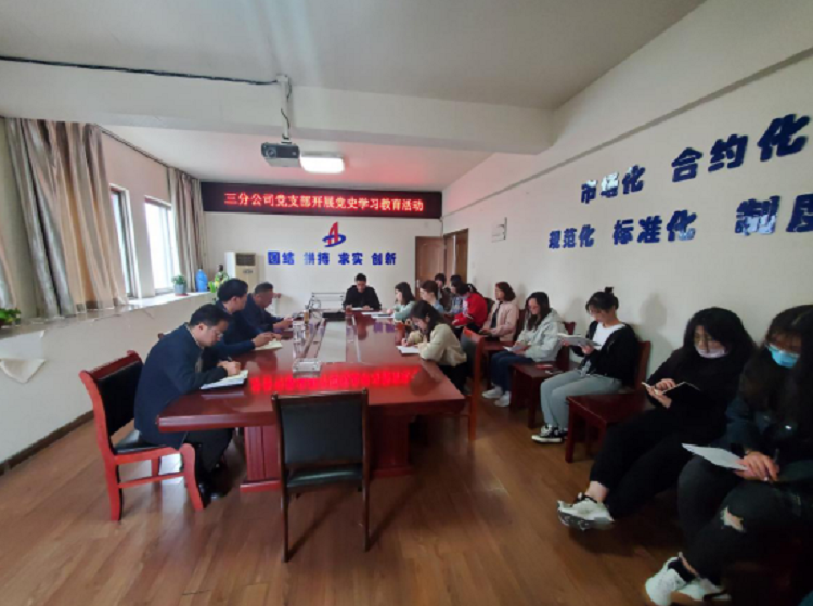 三分公司黨支部開(kāi)展黨史學(xué)習(xí)教育活動(dòng),分公司機(jī)關(guān)全體人員參加,活動(dòng)由支部書(shū)記陳習(xí)武主持。首先,陳習(xí)武帶領(lǐng)大家學(xué)習(xí)了二建黨發(fā)【2021】13號(hào)文《安徽二建公司黨委關(guān)于開(kāi)展黨史學(xué)習(xí)教育的工作方案》,并就分公司黨支部的黨史學(xué)習(xí)教育活動(dòng)做了詳細(xì)安排部署,要求全體黨員干部把思想和行動(dòng)統(tǒng)一到集團(tuán)、公司黨委的決策部署上來(lái),高標(biāo)準(zhǔn)、高質(zhì)量完成黨史學(xué)習(xí)教育各項(xiàng)任務(wù),努力做到學(xué)史明理、學(xué)史增信、學(xué)史崇德、學(xué)史力行,以優(yōu)異成績(jī)迎接建黨100周年。隨后,陳習(xí)武帶領(lǐng)大家上了一堂生動(dòng)的黨史課。“從上海石庫(kù)門到嘉興南湖,一艘小小紅船承載著人民的重托、民族的希望,越過(guò)急流險(xiǎn)灘,穿過(guò)驚濤駭浪,成為領(lǐng)航中國(guó)行穩(wěn)致遠(yuǎn)的巍巍巨輪?!?。通過(guò)視頻和講解相結(jié)合,為大家敘述了從中國(guó)共產(chǎn)黨成立到建立新中國(guó),28年間,黨召開(kāi)了一次次重要會(huì)議。這些會(huì)議作出的決策,指引了中國(guó)革命的方向,推動(dòng)了歷史進(jìn)程,具有里程碑意義。大家紛紛表示,將從黨史中汲取智慧和力量,堅(jiān)定信仰信念,進(jìn)一步提高黨性修養(yǎng),不忘初心,以實(shí)際行動(dòng)發(fā)揮好黨員干部的模范帶頭作用,積極投入到干事創(chuàng)業(yè)中去,為分公司的發(fā)展添磚加瓦。