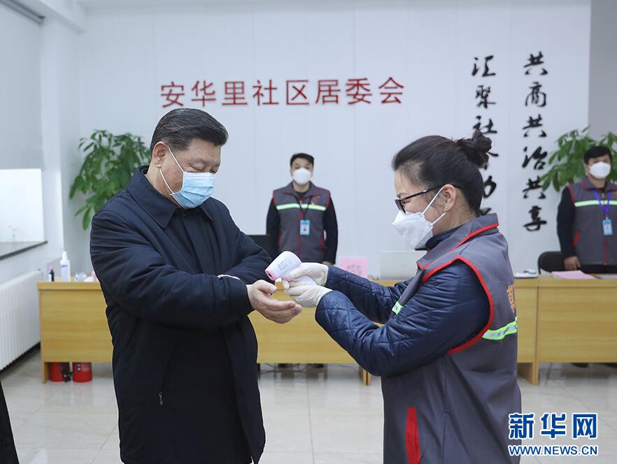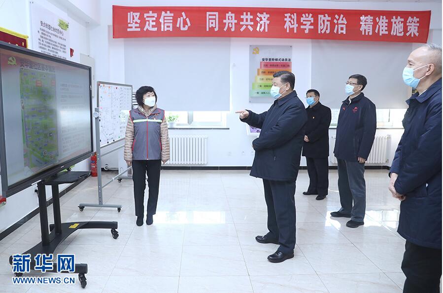 習(xí)近平首先來到北京市朝陽區(qū)安貞街道安華里社區(qū),了解基層一線疫情聯(lián)防聯(lián)控情況。在社區(qū)居民委員會疫情防控指揮部,習(xí)近平聽取了安貞街道和安華里社區(qū)開展聯(lián)防聯(lián)控情況介紹。習(xí)近平對社區(qū)采取多項措施,落實防控責(zé)任,實現(xiàn)入戶排查、重點群體監(jiān)控“兩個全覆蓋”等做法表示肯定。他強調(diào),社區(qū)是疫情聯(lián)防聯(lián)控的第一線,也是外防輸入、內(nèi)防擴散最有效的防線。把社區(qū)這道防線守住,就能有效切斷疫情擴散蔓延的渠道。全國都要充分發(fā)揮社區(qū)在疫情防控中的阻擊作用,把防控力量向社區(qū)下沉,加強社區(qū)各項防控措施的落實,使所有社區(qū)成為疫情防控的堅強堡壘。要以疫情防控工作成效來檢驗和拓展“不忘初心、牢記使命”主題教育成果,發(fā)揮基層黨組織政治引領(lǐng)作用和黨員先鋒模范作用,把社區(qū)居民發(fā)動起來,構(gòu)筑起疫情防控的人民防線。