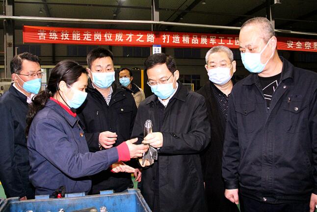 3月4日下午,李中赴軍工集團調(diào)研,了解企業(yè)疫情防控、復工復產(chǎn)和經(jīng)營發(fā)展情況,對企業(yè)在抓好疫情防控的同時積極組織軍品生產(chǎn)供應、努力為國防建設提供裝備保障給予充分肯定。他指出,軍工集團歷經(jīng)艱苦光輝的創(chuàng)業(yè)歷程,為國防現(xiàn)代化建設作出了積極貢獻。下一步要在抓好疫情防控的同時,突出軍品特色,堅持創(chuàng)新驅(qū)動,加強黨的建設,奮力走出一條軍民融合發(fā)展的新路子。隨后,李中前往軍工集團所屬神劍科技股份公司,實地察看生產(chǎn)一線疫情防控和復工復產(chǎn)情況。在神劍公司電裝工房,李中詳細了解軍品科研產(chǎn)品試驗情況,他指出,要下好科技創(chuàng)新“先手棋”,堅持自主創(chuàng)新、協(xié)同創(chuàng)新雙輪驅(qū)動,繼續(xù)做強做優(yōu)做大軍品產(chǎn)業(yè)。在神劍公司加機分廠,李中與車間技術帶頭人深入交流,要求集團黨委堅持以人才為本,為科技人員創(chuàng)新創(chuàng)造創(chuàng)業(yè)提供更加有力的保障。當?shù)弥訖C分廠在安全防控的前提下,已實現(xiàn)全員兩班輪替生產(chǎn)時,李中十分欣慰,再三叮囑加機分廠負責同志要堅決落實疫情防控和安全生產(chǎn)第一責任人職責,統(tǒng)籌做好職工“8小時以內(nèi)”和“8小時以外”的管理,確保安全有序?qū)崿F(xiàn)滿產(chǎn)。