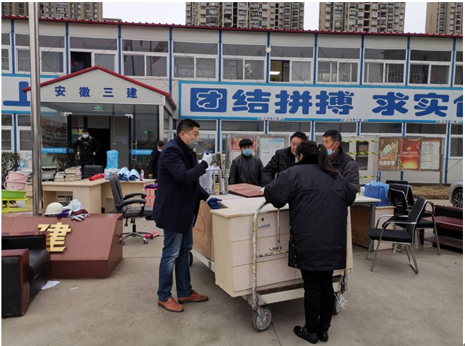 正值大年初一午飯時間,八公司領導立即在分公司工作群及老年護理院項目工作群發(fā)出通知組織搬遷人員。不到1個小時,一支十五名管理人員組成的搬遷突擊隊趕到項目部集結完畢,項目經理高瑞凱擔任隊長。李家保在現場要求管理人員首先要做好個人防護措施,全部佩戴口罩,同時要求項目要做好溝通工作,把必要的生活設施及部分辦公設施留給醫(yī)護人員使用,堅決支持市二院做好疫情防治工作。突擊隊成員頂著雨雪,冒著嚴寒,將資料、物品裝箱、編號,重要資料指定專人負責搬運并跟蹤碼放地點。經過三天的緊張整理和搬遷,1月28日晚順利完成兩棟兩層活動房辦公物資、臨時庫房等物資搬遷,并在市二院指定新辦公地點整理完畢,辦公區(qū)順利移交。