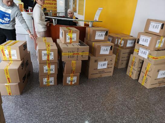 由于采購(gòu)的防疫物資數(shù)量大,而又恰逢周末,貨運(yùn)公司人手不足。為爭(zhēng)分奪秒,縮短物資發(fā)運(yùn)時(shí)間,采購(gòu)小組主動(dòng)前往DHL航空貨運(yùn)公司,協(xié)助貨運(yùn)公司工作人員對(duì)防疫物資進(jìn)行分裝、打包、貼簽。然而難題又出現(xiàn)了,按照貨運(yùn)公司規(guī)定,大宗物資必須分批次進(jìn)行報(bào)關(guān)發(fā)貨,這樣好不容易采購(gòu)到的防疫物資就不能全部在第一時(shí)間內(nèi)抵達(dá)國(guó)內(nèi)。經(jīng)過(guò)討論和咨詢(xún),并與貨運(yùn)公司反復(fù)協(xié)商,駐阿經(jīng)理部決定以公司名義辦理報(bào)關(guān),并迅速整理遞交了報(bào)關(guān)資料,全力協(xié)助DHL貨運(yùn)公司發(fā)運(yùn)防疫物資,最大限度確保防疫物資盡快運(yùn)抵國(guó)內(nèi)。