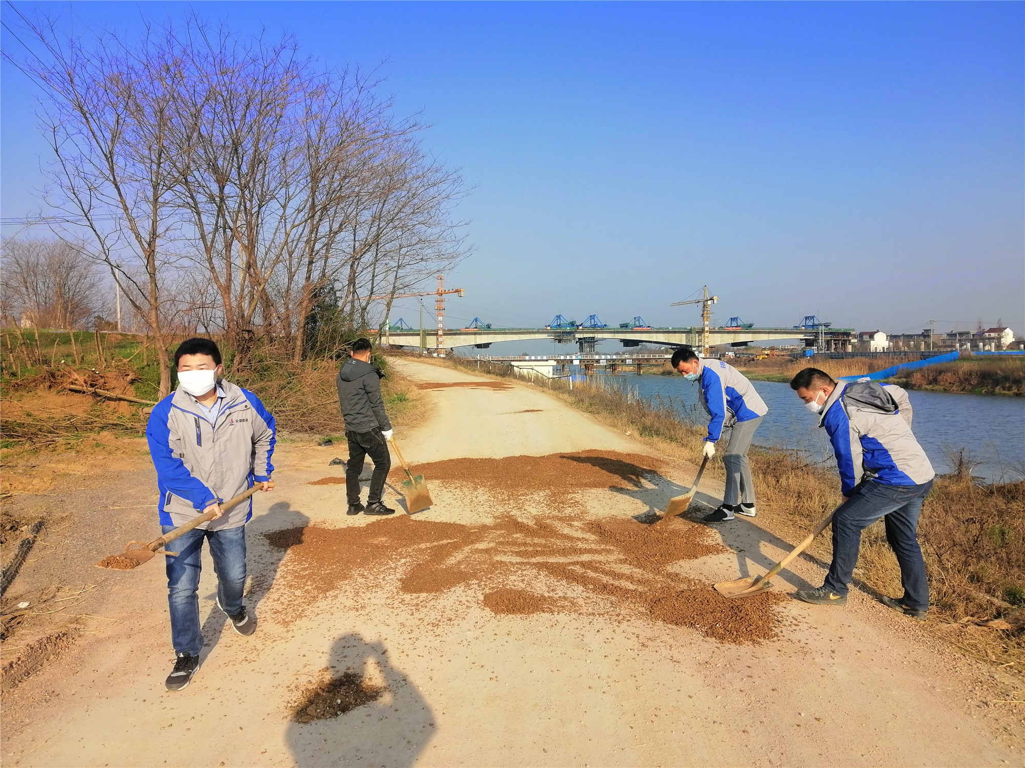 在做好項(xiàng)目?jī)?nèi)部防疫工作的同時(shí),青年職工們積極與當(dāng)?shù)厣鐓^(qū)委聯(lián)系,擔(dān)負(fù)起工地周邊道路清掃、修整等工作,保障周邊居民良好的通行環(huán)境。