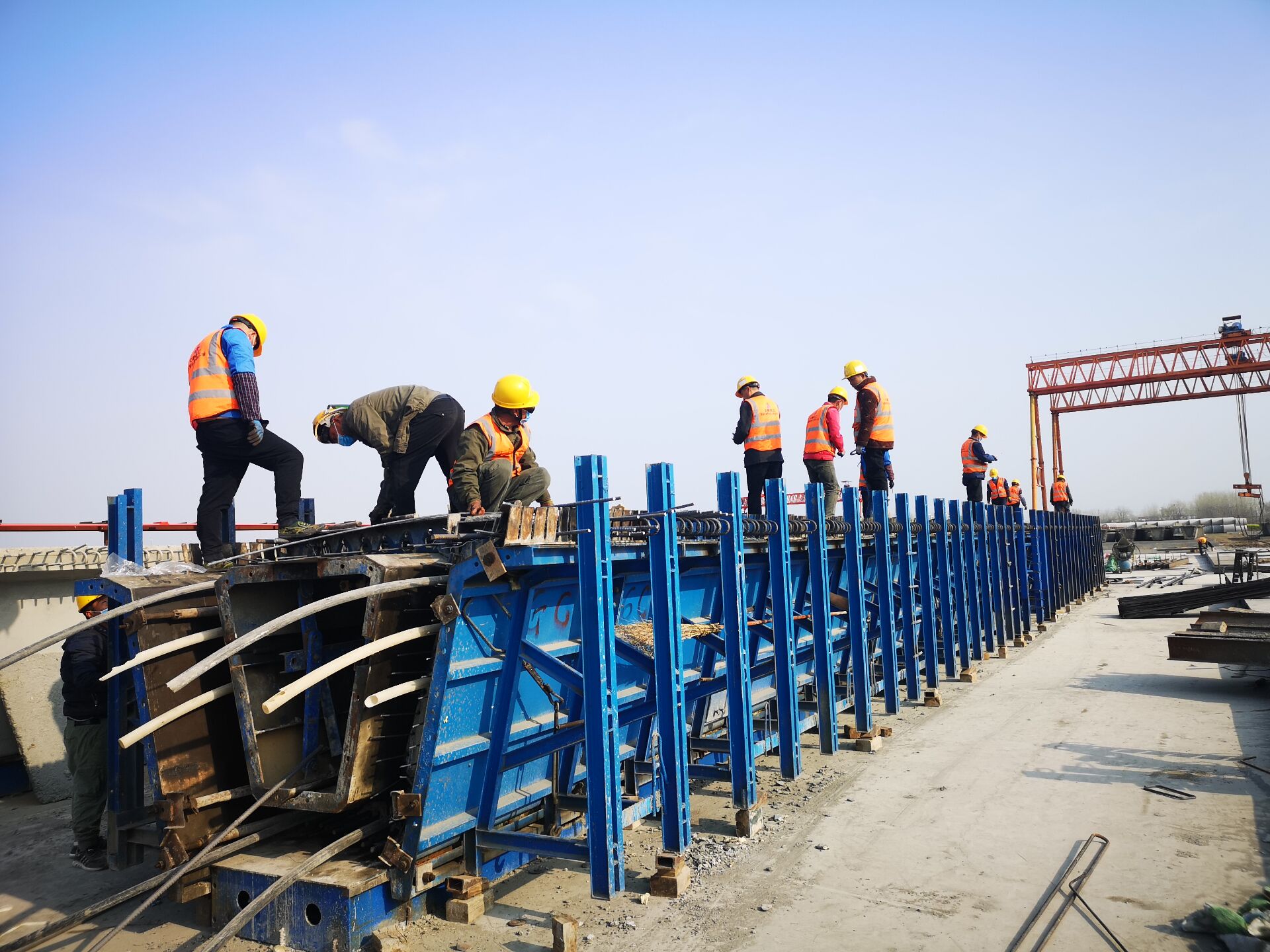 固蚌預(yù)制01標(biāo)以“開局就是決戰(zhàn)、起步就是沖刺”的勁頭,積極主動與當(dāng)?shù)卣?lián)系溝通,日夜奮戰(zhàn),使防護(hù)、小構(gòu)、裝配式涵洞、T梁、箱梁和橋面板等,在短短的1個月的時間里,所有施工作業(yè)面全面快速展開。