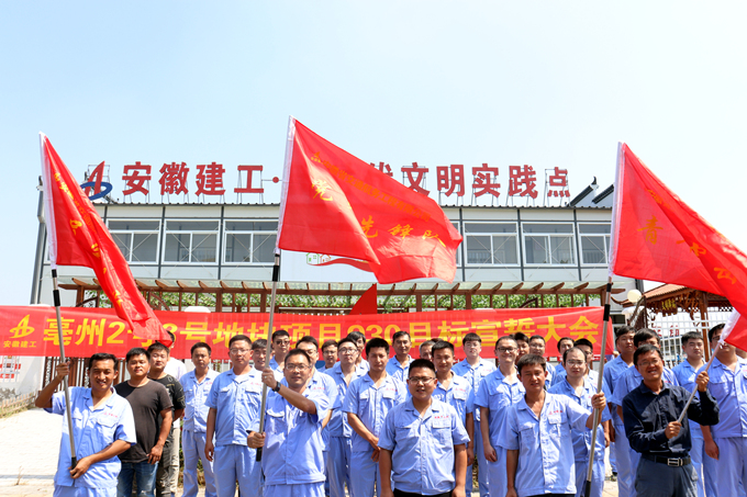 “我宣誓,作為一名參建者,在930目標(biāo)任務(wù)面前絕不后退,勇敢前行,服從指揮,聽從號令,堅守崗位,保證完成930搶工任務(wù),以實際行動向亳州市民交上一份滿意的答卷?!?月11日,在亳州2號3號地塊項目新時代文明實踐點,一批長期奮戰(zhàn)在一線的黨員、青年突擊隊員、各合作單位施工人員及工人手握拳頭,莊嚴(yán)地宣讀鏗鏘誓言,掀起了亳州2號3號地塊項目2號地塊“搶工大干攻堅戰(zhàn)”的新高潮。