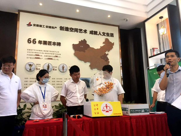 由于此次僅開(kāi)19間商鋪,為最大程度保證開(kāi)盤(pán)的公開(kāi)、公平、公正,沛縣公司領(lǐng)導(dǎo)班子結(jié)合《關(guān)于集中開(kāi)展“靠企吃企 境外腐敗 違規(guī)經(jīng)商辦企業(yè)”三個(gè)專項(xiàng)整治的工作方案》與各部門(mén)負(fù)責(zé)人經(jīng)過(guò)多次商討,決定采用搖號(hào)的形式進(jìn)行商鋪開(kāi)盤(pán),并邀請(qǐng)沛縣司法局公證處全程監(jiān)督記錄搖號(hào)過(guò)程,堅(jiān)決杜絕任何銷(xiāo)售過(guò)程可能存在的不良違規(guī)現(xiàn)象,這在沛縣是絕無(wú)僅有的。