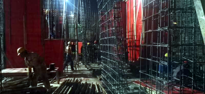為加快施工生產(chǎn)進度,項目部領(lǐng)導(dǎo)及管理人員、作業(yè)單位放棄休息日,發(fā)揚“白加黑”的苦干實干精神,加班加點,堅守崗位。克服種種困難,戰(zhàn)勝多種不利因素,積極推進施工進度。項目部要求作業(yè)單位優(yōu)化施工組織,通過增大工作面、增加施工班組等多種措施,加快施工進度。同時,為保證夜間施工順利進行,項目在符合環(huán)保部門要求的條件下,項目領(lǐng)導(dǎo)帶領(lǐng)一線管理人員實施夜間值班制度,每天由值班經(jīng)理帶頭,項目安全員、質(zhì)量員及棟號長配合夜間施工生產(chǎn)管理。