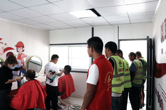 此外,公司以“保障一線施工人員的權(quán)益”為落腳點(diǎn),花式“送福利”,讓工人們體會到了家一般的溫暖?!拔覅⒓拥幕顒佣嘀?!中秋節(jié)送月餅、愛心剪發(fā)、夏日送清涼等,在其他地方可沒這個待遇?!闭勂鸸ぷ髦啵┕ぐ嘟M組長胡恒悅?cè)滩蛔】滟澋?。為營造新時代文明實踐好氛圍,使農(nóng)民工兄弟們感受到關(guān)愛,交航公司全力做好后勤保障,力爭為一線員工提供更加舒適的工作環(huán)境。