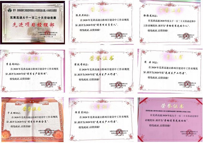 3月5日,安徽交控集團組織召開蕪黃高速公路“縣縣通高速”攻堅行動2021年生產(chǎn)調度會,安徽路橋集團蕪黃路基03標在2020年度蕪黃高速公路勞動競賽中榮獲“先進項目經(jīng)理部”“最美班組”、“勞動競賽先進班組”的榮譽,項目負責人陳衛(wèi)衛(wèi)等同志分別獲得“優(yōu)秀項目負責人”、“優(yōu)秀生產(chǎn)副經(jīng)理”、“先進生產(chǎn)工作者”、“優(yōu)秀專職安全員”等稱號。