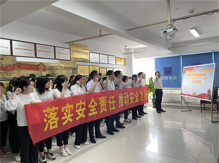 今年6月是第20個(gè)全國“安全生產(chǎn)月”,主題是“落實(shí)安全責(zé)任,推動(dòng)安全發(fā)展”。為深入貫徹落實(shí)習(xí)近平總書記關(guān)于安全生產(chǎn)重要論述,牢固樹立安全發(fā)展觀,提升公司全員安全意識(shí),增強(qiáng)安全生產(chǎn)責(zé)任落實(shí),推進(jìn)公司安全文化的建設(shè),為慶祝建黨100周年?duì)I造良好的安全環(huán)境,安徽水利于6月1日在全公司范圍內(nèi)開展安全宣誓,拉開“安全生產(chǎn)月”活動(dòng)序幕。安徽水利黨委書記、董事長(zhǎng)、安委會(huì)主任張曉林出席活動(dòng)并領(lǐng)誓。