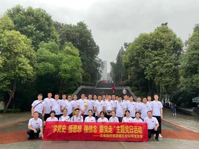 為紀(jì)念中國(guó)共產(chǎn)黨成立100周年,全面深入落實(shí)好黨史學(xué)習(xí)教育,推進(jìn)支部的組織建設(shè),激勵(lì)全體黨員繼承和發(fā)揚(yáng)黨的優(yōu)良傳統(tǒng)和作風(fēng),進(jìn)一步增強(qiáng)基層黨組織的凝聚力、號(hào)召力和戰(zhàn)斗力,安徽路橋集團(tuán)第五分公司黨支部于6月26日到達(dá)有“紅軍的搖籃、將軍的故鄉(xiāng)”之稱的金寨縣,以“學(xué)黨史 悟思想 強(qiáng)信念 跟黨走”為主題,瞻仰革命先烈,重溫入黨誓詞,接受革命傳統(tǒng)教育。五分公司全體黨員、積極分子等40余人參加此次活動(dòng)。