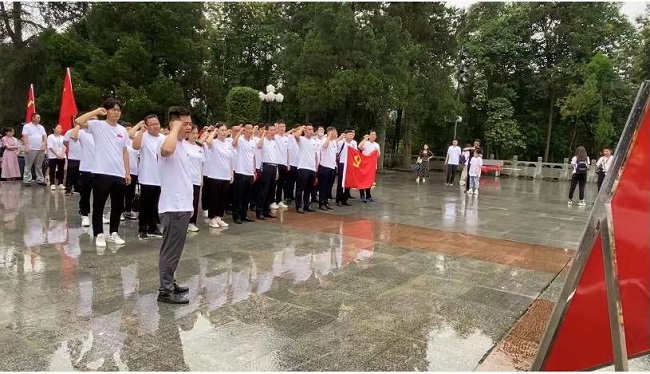 參觀展覽結(jié)束后,全體同志沿循環(huán)步道祭奠參觀了紅軍烈士墓園。園內(nèi)安葬革命烈士和已故老紅軍近200位,同志們身臨其境地感受到金寨紅軍烈士忠貞不屈、甘于奉獻(xiàn)的高貴品格和革命精神。在洪學(xué)智將軍紀(jì)念碑前,同志們分批進(jìn)行了默哀與致敬鞠躬。青松翠柏旁,莊嚴(yán)肅穆地回顧了兩膺上將的共和國(guó)領(lǐng)導(dǎo)人的光輝一生,感慨良多。兩名黨員代表向革命烈士敬獻(xiàn)花籃,分公司副書記、總經(jīng)理代杰上前整理緞帶。隨后,全體同志面向烈士紀(jì)念碑三鞠躬,并莊嚴(yán)宣誓,重溫入黨誓詞,堅(jiān)定入黨初心。