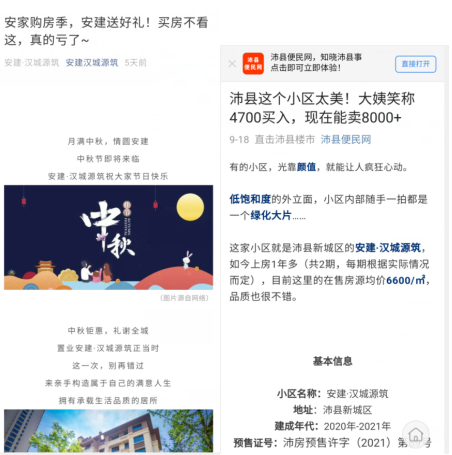 因沛縣防疫要求,安建·漢城源筑項(xiàng)目在中秋節(jié)到來之際,以線上推廣促銷活動(dòng)為主,舉行了“安家購房季——購好房 送豪禮”活動(dòng)。邀請抖音網(wǎng)紅前來現(xiàn)場拍攝視頻并在抖音發(fā)布,宣傳活動(dòng)信息,并通過便民網(wǎng)、微信公眾號(hào)、朋友圈等推廣活動(dòng)及在售信息。營銷策劃部工作人員節(jié)日期間采用輪流排班,堅(jiān)守營銷崗位,緊抓雙節(jié)期間置業(yè)節(jié)點(diǎn),緊鑼密鼓加速項(xiàng)目銷售工作。安建漢城源筑9月累計(jì)認(rèn)購住宅19套,車位22個(gè),累計(jì)認(rèn)購金額超2000萬元。
