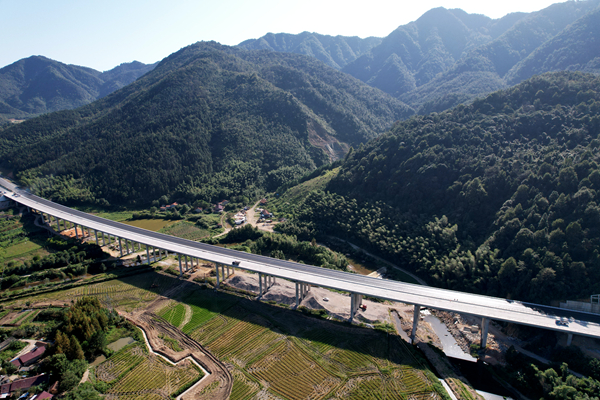 進(jìn)入9月,位于皖南山區(qū)的安徽路橋道路分公司宣涇高速?zèng)芸h樞紐互通項(xiàng)目施工現(xiàn)場(chǎng),呈現(xiàn)出白天一片熱火朝天、夜晚依然燈火通明的大干景象。遠(yuǎn)遠(yuǎn)望去,只見立體式的互通環(huán)環(huán)相扣,一排排高低整齊的滿堂支架沿著山谷向四方輻射,在青山映襯之下,頗為壯觀。