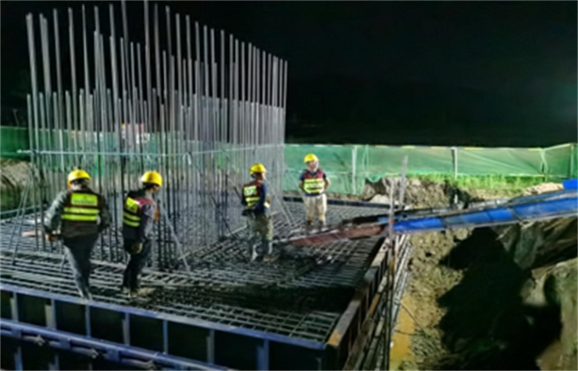 2021年以來,為搶工期、趕進度,落實“縣縣通高速”攻堅行動的總體要求,項目部積極響應公司“學黨史、保安康、搶工期、爭一流”勞動競賽號召,按照總體施工組織設計及節(jié)點施工計劃,分解下達到日、旬、月、季度施工生產(chǎn)計劃,倒排施工工期,緊盯目標任務不放松。同時,項目全體參建人員咬緊牙關、鼓足干勁、通宵達旦,連續(xù)作戰(zhàn),克服疫情對工期影響,開啟了24小時三班倒連續(xù)作業(yè)模式,日夜奮戰(zhàn)、揮汗如雨。