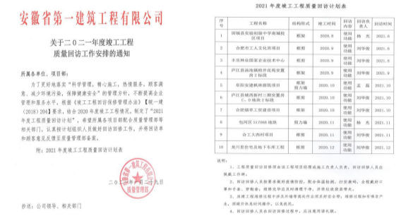 回訪維修重服務(wù)。活動期間,安徽一建、安徽二建、安徽三建等單位紛紛組織對承建項目進行檢查、回訪、維修,并建立大客戶回訪數(shù)據(jù)庫,加強與客戶溝通,增強客戶對公司的滿意度,牢牢樹立全心全意為用戶提供優(yōu)質(zhì)服務(wù)的安徽建工一流企業(yè)形象,創(chuàng)造“服務(wù)換合作”的機遇。