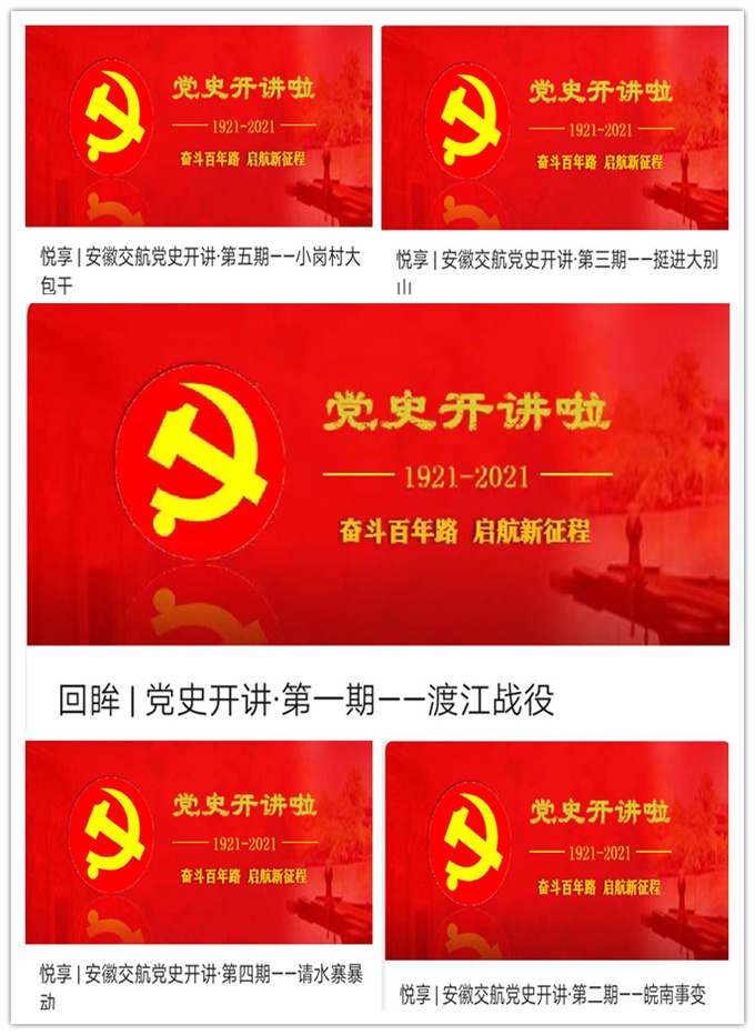 結(jié)合當(dāng)前黨史學(xué)習(xí)教育實(shí)際,充分運(yùn)用安徽黨史文庫(kù)平臺(tái)線(xiàn)上資源,創(chuàng)新學(xué)習(xí)教育形式,充分運(yùn)用我們身邊的“安徽黨史故事”,開(kāi)設(shè)《黨史開(kāi)講》欄目,邀請(qǐng)公司領(lǐng)導(dǎo)講述在江淮大地上發(fā)生的黨史故事。截至目前,《黨史開(kāi)講》欄目已經(jīng)制作5期,受眾人數(shù)達(dá)到500余人次,點(diǎn)擊量達(dá)到1500多人次,分別講述了在安徽大地上發(fā)生的渡江戰(zhàn)役、皖南事變、挺進(jìn)大別山、請(qǐng)水寨暴動(dòng)和小崗大包干五個(gè)黨史故事。