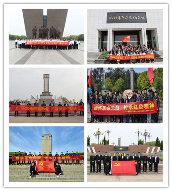 誠(chéng)如公司黨辦負(fù)責(zé)人所說(shuō),公司黨委將黨史學(xué)習(xí)教育同特色主題活動(dòng)結(jié)合起來(lái)。充分用好身邊紅色資源。所屬各支部紛紛就近赴紅色主題紀(jì)念館開(kāi)展形式多樣的革命傳統(tǒng)教育。機(jī)關(guān)黨支部、引江濟(jì)淮項(xiàng)目黨支部赴渡江戰(zhàn)役紀(jì)念館聯(lián)合開(kāi)展黨史學(xué)習(xí)教育主題黨日活動(dòng),亳州PPP項(xiàng)目支部把黨史學(xué)習(xí)教育課堂“搬到”烈士陵園,開(kāi)展“緬懷革命先烈、重溫入黨誓詞、傳承紅色基因”聯(lián)建共建主題活動(dòng),淮北分公司黨支部組織全體員工到徐州淮海戰(zhàn)役紀(jì)念塔以“繼承革命傳統(tǒng),傳承紅色基因”為主題黨建活動(dòng),三公司利辛片區(qū)到利辛縣烈士陵園舉辦以“不忘先烈拋忠骨,民族復(fù)興中華魂”為主題的清明節(jié)祭掃紀(jì)念活動(dòng)。另外,機(jī)關(guān)黨支部和滁州時(shí)代樾府項(xiàng)目黨支部聯(lián)合組織赴定遠(yuǎn)藕塘烈士陵園緬懷革命先烈,傳承紅色精神。積極創(chuàng)新主題黨日活動(dòng)。5月11日下午,機(jī)關(guān)黨支部、機(jī)關(guān)工會(huì)聯(lián)合開(kāi)展以“重溫黨史守初心 砥礪前行擔(dān)使命”為主題的慶祝中國(guó)共產(chǎn)黨成立100周年毅行活動(dòng),不僅在毅行線(xiàn)路中開(kāi)展黨史學(xué)習(xí)教育掃碼答題活動(dòng),而且在沿途展示中國(guó)共產(chǎn)黨帶領(lǐng)中國(guó)人民站起來(lái)、富起來(lái)、強(qiáng)起來(lái)的百年波瀾壯闊的歷史。三公司、利辛片區(qū)、亳州PPP項(xiàng)目、泗縣產(chǎn)業(yè)園EPC項(xiàng)目、品創(chuàng)檢測(cè)公司、天水項(xiàng)目等黨支部積極開(kāi)展各具特色的主題黨日活動(dòng),確保黨史學(xué)習(xí)教育見(jiàn)到實(shí)效。