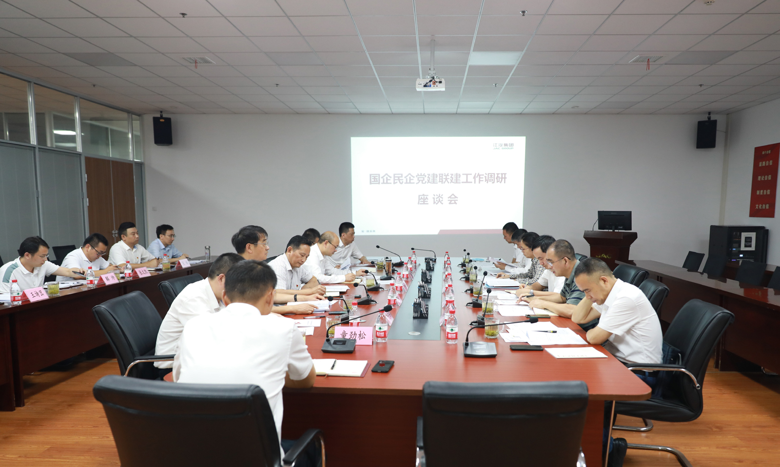 調(diào)研組一行隨后赴江汽集團開展調(diào)研,并召開座談交流會。會上,牛曙東代表集團黨委介紹了黨建聯(lián)建活動開展情況、工作成效與實踐啟示。他表示,集團黨委高度重視黨建聯(lián)建工作,不斷加強組織領(lǐng)導(dǎo)、過程督導(dǎo)、宣傳引導(dǎo)。通過黨建聯(lián)建,最大限度發(fā)揮各方面力量,黨員示范作用影響力更大,示范帶動效果更加明顯,支部戰(zhàn)斗堡壘作用更為堅實,為推動項目建設(shè)提供了堅強政治保證。
