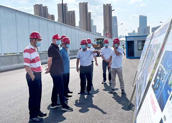 8月17日,建工控股黨委委員、副總經(jīng)理、總工程師戴良軍先后到安徽路橋公司承建的暢通二環(huán)(西南環(huán))、繁華大道橋項(xiàng)目調(diào)研指導(dǎo)工作。