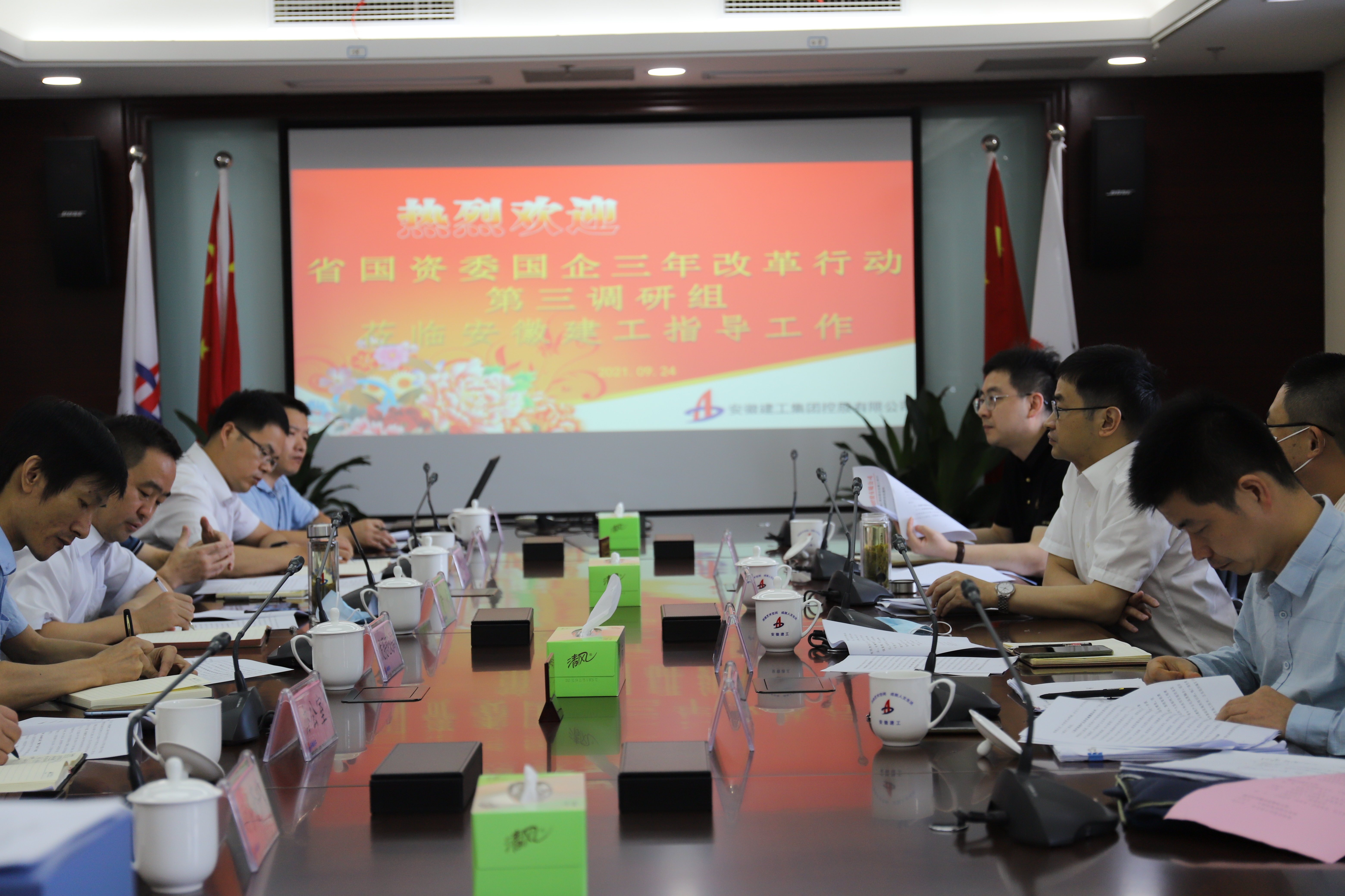 9月24日上午,省國企改革領導小組辦公室第三調研組組長、省國資委產權管理處處長陳兵率隊到安徽建工調研國企改革三年行動重點任務落實情況。建工股份黨委委員、副總經理、董事會秘書黃代接待調研組一行并參加調研會議。