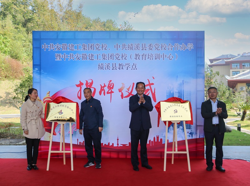 10月23日上午,安徽建工集團黨校、績溪縣委黨校合作建設(shè)教育培訓(xùn)基地暨安徽建工集團黨校(教育培訓(xùn)中心)績溪教學(xué)點揭牌儀式在中共績溪縣委黨校舉行??毓晒军h委副書記、工會主席牛曙東,績溪縣委副書記、縣委黨校校長何峻,股份公司黨委副書記、集團工會副主席徐文聯(lián),績溪縣委黨校常務(wù)副校長胡亦萍共同為集團黨校(教育培訓(xùn)中心)績溪教學(xué)點揭牌。集團黨委工作部部長王詩旵主持揭牌儀式。