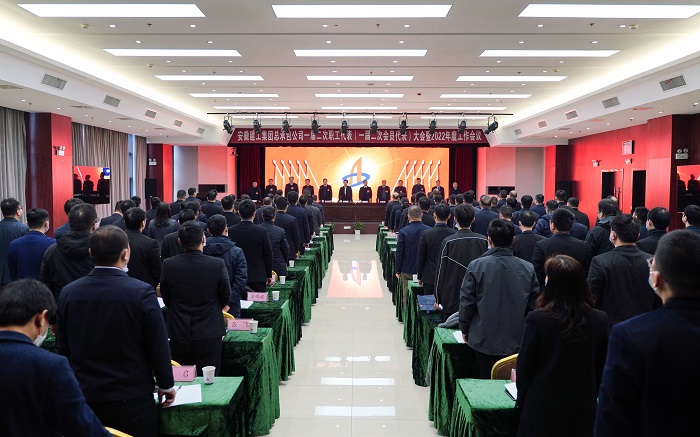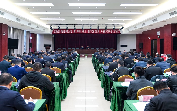 人勤春來(lái)早,奮進(jìn)正當(dāng)時(shí)!壬寅虎年春節(jié)假期剛過,2月12日至13日周末,安建總承包一屆二次職工代表(一屆二次會(huì)員代表)大會(huì)暨2022年度工作會(huì)議在安建大廈勝利召開,學(xué)習(xí)傳達(dá)集團(tuán)二屆二次職代會(huì)暨2022年工作會(huì)議精神,回顧總結(jié)2021年工作,謀劃部署2022年工作。建工股份黨委副書記、總經(jīng)理、董事李有貴出席并講話,集團(tuán)黨委工作部部長(zhǎng)王詩(shī)旵率考核組到會(huì)開展公司領(lǐng)導(dǎo)班子及成員2021年度綜合考核以及“一報(bào)告兩評(píng)議”民主測(cè)評(píng)工作。公司領(lǐng)導(dǎo)張沖、王成民、高立久、陳道兵、徐友修、谷建偉、李登祥、王慶松、副督察員孫有勇、總助阮明、余新友參會(huì),九個(gè)政企合資公司政府股東方派駐的十多名經(jīng)理層人員作為特邀代表參會(huì)。大會(huì)在奏唱《安徽建工之歌》中開幕。