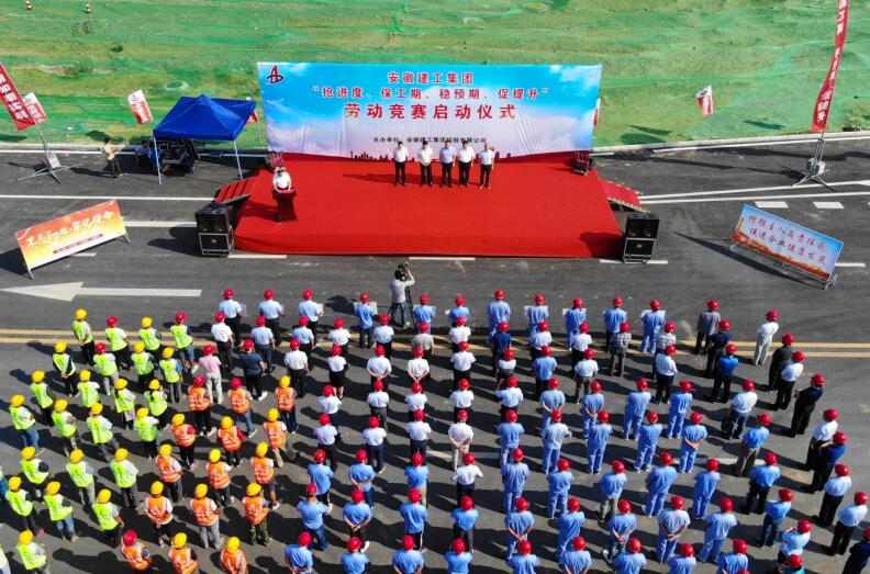 9月4日上午,安徽建工集團(tuán)“搶進(jìn)度、保工期、穩(wěn)預(yù)期、促提升”勞動(dòng)競賽啟動(dòng)儀式在蒙城安徽交航職教園項(xiàng)目隆重舉行。建工控股黨委委員、股份公司董事、總經(jīng)理許克順,股份公司董事、副總經(jīng)理孫學(xué)軍出席啟動(dòng)儀式。蒙城縣委副書記、縣長孔祥永、副縣長于杰、政協(xié)副主席、交通運(yùn)輸局局長胡春雨等應(yīng)邀出席啟動(dòng)儀式。集團(tuán)機(jī)關(guān)有關(guān)部門負(fù)責(zé)人、所屬各參賽單位分管領(lǐng)導(dǎo)、工會(huì)負(fù)責(zé)人、蒙城縣有關(guān)單位負(fù)責(zé)人以及參建項(xiàng)目員工代表等100余人參加了儀式?;顒?dòng)由建工控股工會(huì)副主席李世龍主持。