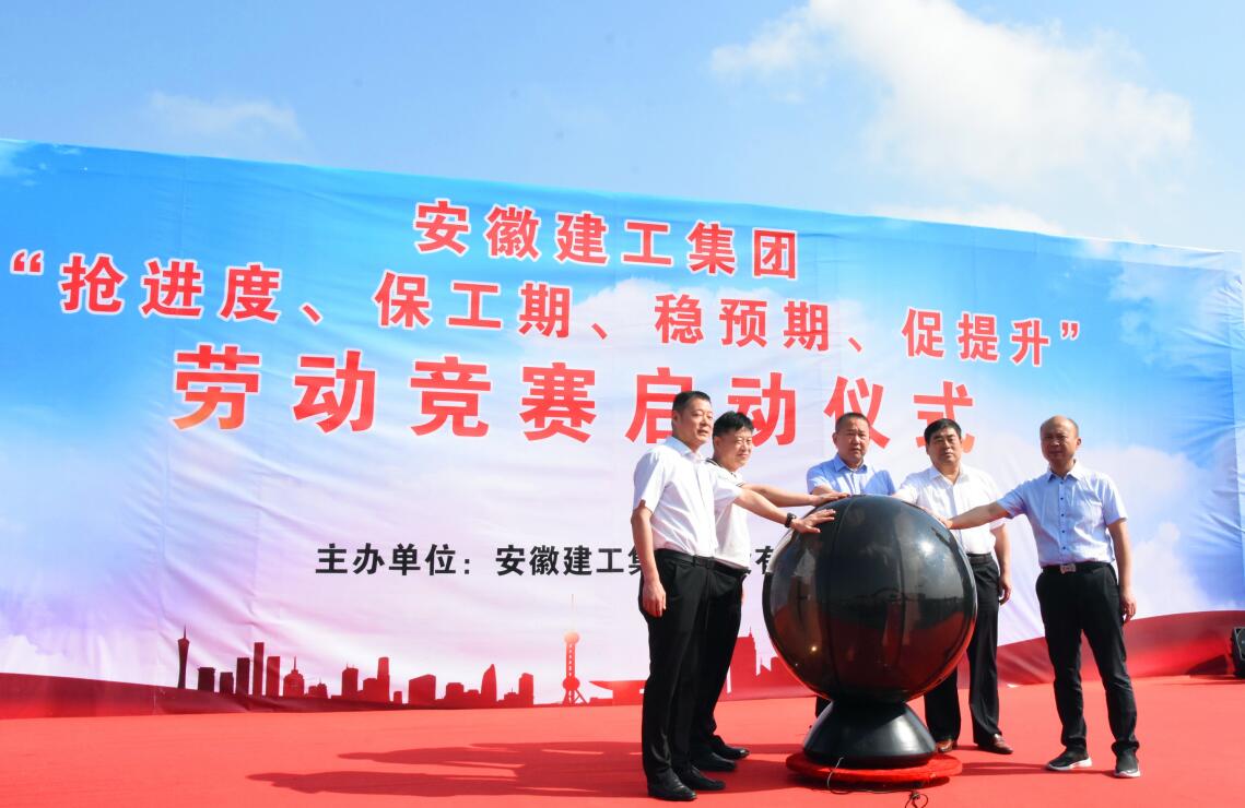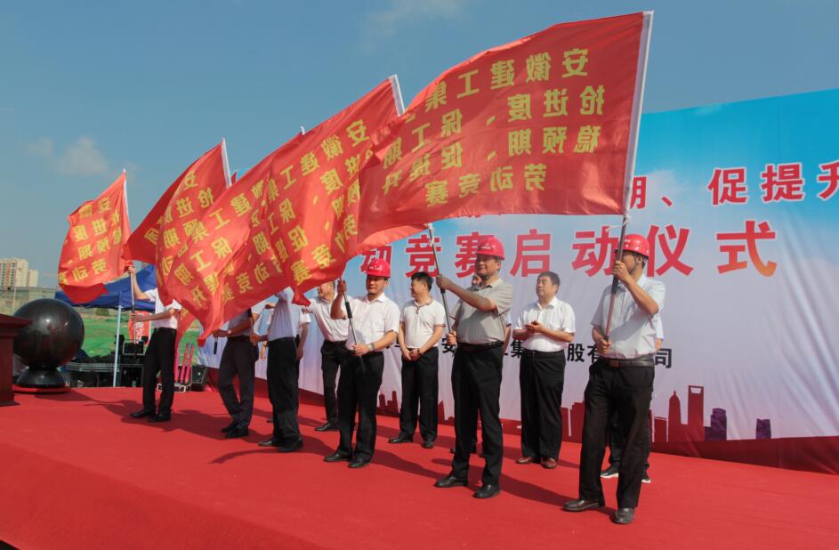 啟動(dòng)儀式最后,蒙城縣主要領(lǐng)導(dǎo)和集團(tuán)公司有關(guān)領(lǐng)導(dǎo)共同按下啟動(dòng)球,并向參賽單位授旗,標(biāo)志著安徽建工集團(tuán)“搶進(jìn)度、保工期、穩(wěn)預(yù)期、促提升”勞動(dòng)競賽正式啟動(dòng)。