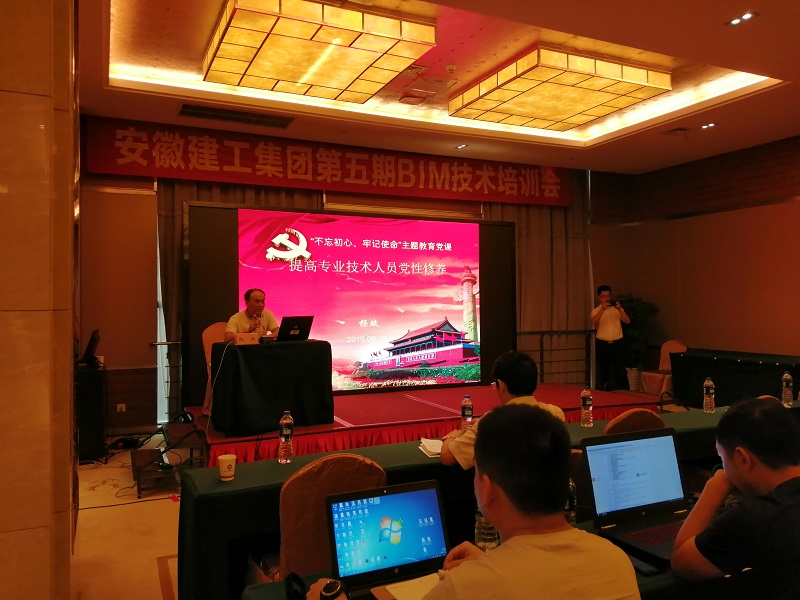 9月18日至9月24日,安徽建工集團股份公司在肥東安徽水利和順大酒店舉辦了第五期BIM技術培訓。本次培訓為封閉式高級培訓,由總工辦與人力資源部合辦。參培的55名技術骨干,主要由所屬單位從參加過集團公司第三期、第四期BIM技術培訓且考核成績較好的人員推薦組成。股份公司總工程師楊斌參加開班儀式并結(jié)合“不忘初心、牢記使命”主題教育為學員上了《提高專業(yè)技術人員黨性修養(yǎng)》黨課。