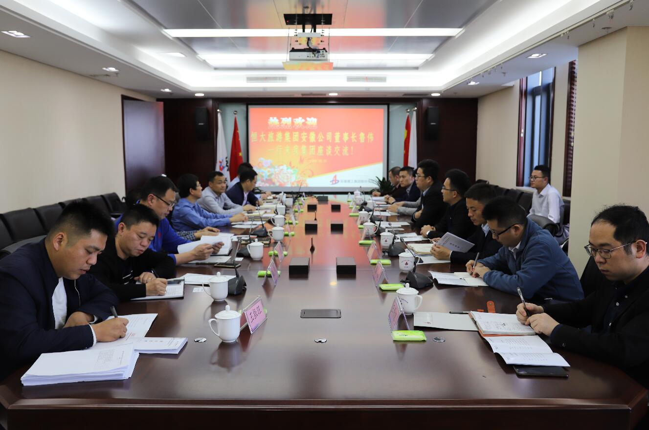 10月31日下午,建工控股黨委委員、股份公司董事長王厚良在安建國際大廈會(huì)見了來訪的恒大旅游集團(tuán)安徽公司董事長魯偉一行,并主持召開座談會(huì)。