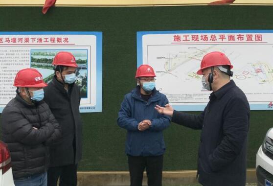 會(huì)后,楊廣亮一行又冒雨來(lái)到一公司裕安區(qū)馬堰河渠下涵工程項(xiàng)目施工現(xiàn)場(chǎng)。該項(xiàng)目已于2月21日全面復(fù)工。楊廣亮對(duì)防疫物資準(zhǔn)備、“一責(zé)兩案”的落實(shí)情況進(jìn)行了細(xì)致的檢查,并要求在做好疫情防控工作的同時(shí),確保安全生產(chǎn),提高效率,加班加點(diǎn),實(shí)現(xiàn)度汛目標(biāo)。