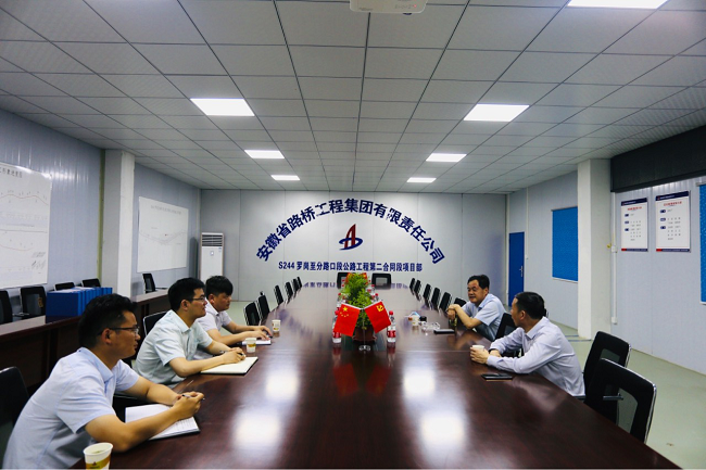 在項目部會議室,戴良軍與分公司、項目部主要管理人員親切交流,分享工作中的經(jīng)驗和感悟。