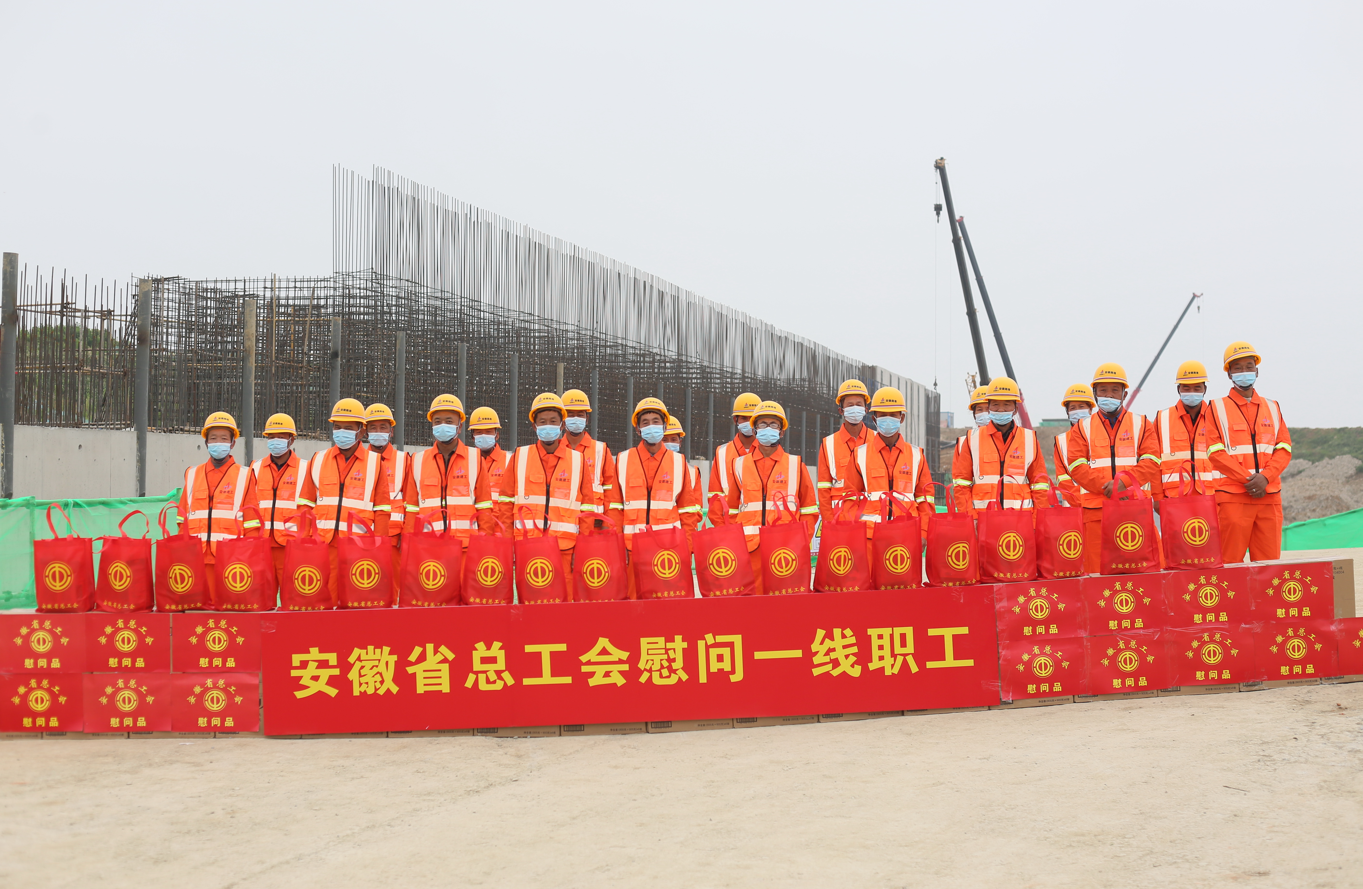 啟動儀式后,宋國權(quán)一行還看望慰問了建設(shè)工地一線職工,為他們送上慰問品。宋國權(quán)強調(diào),引江濟淮工程是國家重大水利工程,也是安徽基礎(chǔ)設(shè)施建設(shè)一號工程。希望廣大職工弘揚勞模精神、勞動精神、工匠精神,利用勞動競賽的廣闊平臺,以賽促訓(xùn)、以賽促建,為工程項目的安全高效建設(shè)貢獻智慧和力量;勤學(xué)苦練、深入鉆研,不斷提升技術(shù)技能水平,努力成為行家里手、業(yè)務(wù)好手。