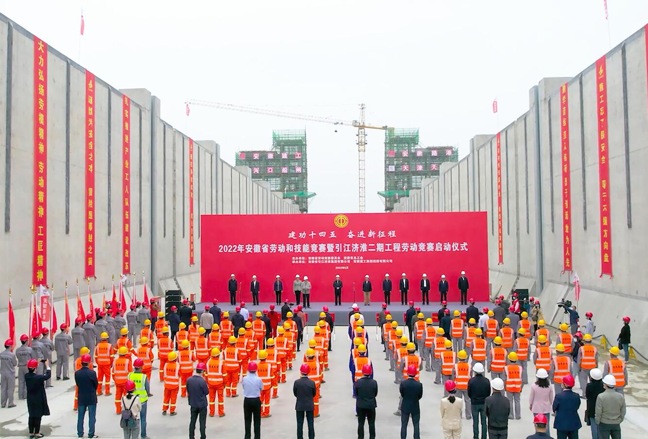 5月11日上午,由安徽省勞動競賽委員會、安徽省總工會主辦,安徽建工集團控股有限公司、安徽省引江濟淮集團有限公司承辦的2022年安徽省勞動和技能競賽暨引江濟淮二期工程勞動競賽啟動儀式在安徽省路港工程有限責(zé)任公司承建的引江濟淮工程派河口船閘項目現(xiàn)場舉行。