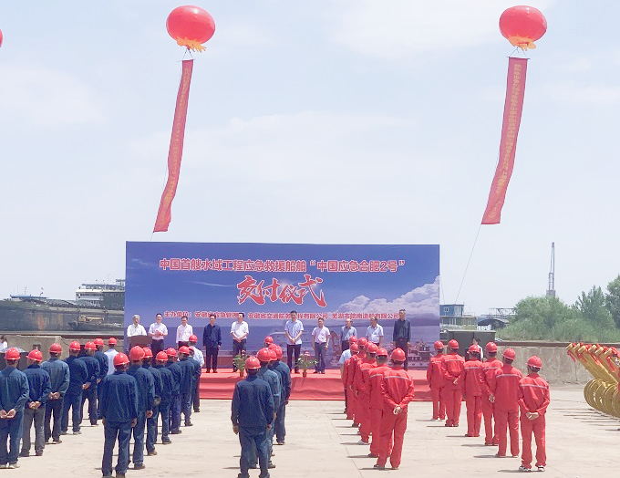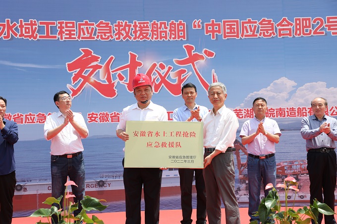 5月23日上午11時18分,伴隨著船舶隆隆的汽笛聲,在隆重的交付儀式中,中國首艘水域工程應(yīng)急救援船舶“中國應(yīng)急合肥2號”正式入列安徽交航應(yīng)急救援基地。安徽省應(yīng)急管理廳一級巡視員汪黎明,控股公司副總工程師、股份公司首席信息官吳紅星出席儀式。應(yīng)急管理廳救援協(xié)調(diào)和預(yù)案管理處處長魏文斌、三級調(diào)研員沈磊,蕪湖市應(yīng)急管理局副局長程克柱,安徽省皖江船舶檢驗局副局長孫成嶺、王其端,蕪湖市皖南造船有限公司副總經(jīng)理陸青松等參加上述儀式。公司黨委書記、董事長方申柱主持儀式。