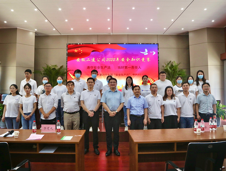 今年六月是第21個“全國安全生產(chǎn)月”,為了貫徹落實活動主題“遵守安全生產(chǎn)法 當好第一責任人”,用以賽促學、以活動促宣傳的方式提高廣大職工的安全意識,6月17日上午,公司工會牽頭,與安全管理部聯(lián)合舉辦了安徽二建2022年安全知識競賽活動。公司黨委副書記、總經(jīng)理李建成,黨委副書記、工會主席王軍出席活動,黨委委員、副總經(jīng)理葉和永,安全總監(jiān)、安全管理部主任曹建,工會副主席、女工委主任王俊出席并擔任評委。