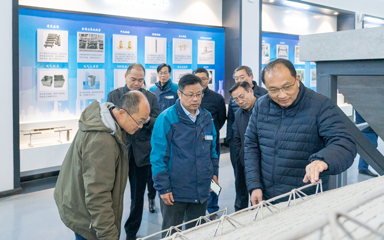 何向陽一行參觀了建筑工業(yè)公司生產(chǎn)車間,詳細(xì)了解了裝配式建筑固定模臺生產(chǎn)線、部品部件、軌道交通管片生產(chǎn)流程。在建筑工業(yè)公司綠色建造展廳,何向陽一行通過公司自行研發(fā)的Smart-PC智能化工廠大數(shù)據(jù)電子大屏,查看了企業(yè)部品構(gòu)件生產(chǎn)動態(tài)、精準(zhǔn)排產(chǎn)、堆場可視以及設(shè)備安全監(jiān)控、成本自動核算等功能后,對工業(yè)公司在發(fā)展裝配式建筑和智能建造技術(shù)方面取得的成果給予高度贊揚,并表示希望進一步加強政企合作,建設(shè)更為廣闊的合作平臺,實現(xiàn)互利共贏、共同發(fā)展。