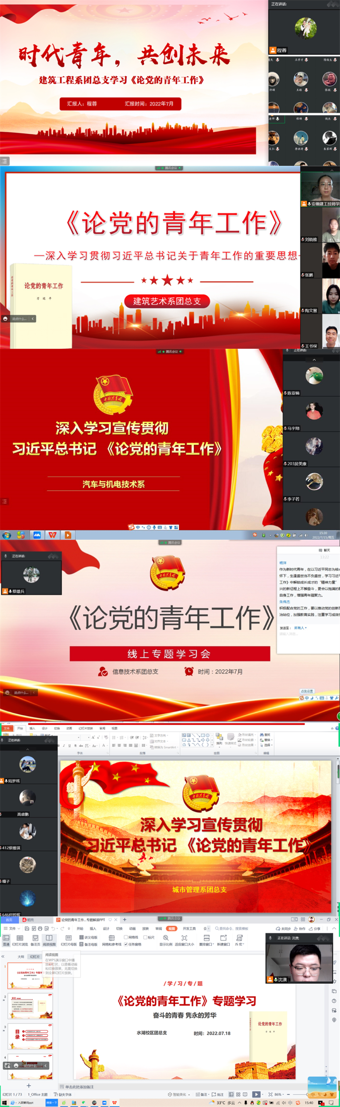 為深入學(xué)習(xí)宣傳貫徹習(xí)近平總書(shū)記《論黨的青年工作》精神,近日,安徽建工技師學(xué)院團(tuán)委按照學(xué)院黨委和集團(tuán)團(tuán)委工作部署組織全體團(tuán)員迅速行動(dòng),掀起學(xué)習(xí)宣貫熱潮。通過(guò)開(kāi)展線(xiàn)上專(zhuān)題學(xué)習(xí)會(huì)組織全體團(tuán)員開(kāi)展學(xué)習(xí)討論,截至目前,共組織開(kāi)展專(zhuān)題學(xué)習(xí)研討會(huì)6場(chǎng),參與人數(shù)500余人次。